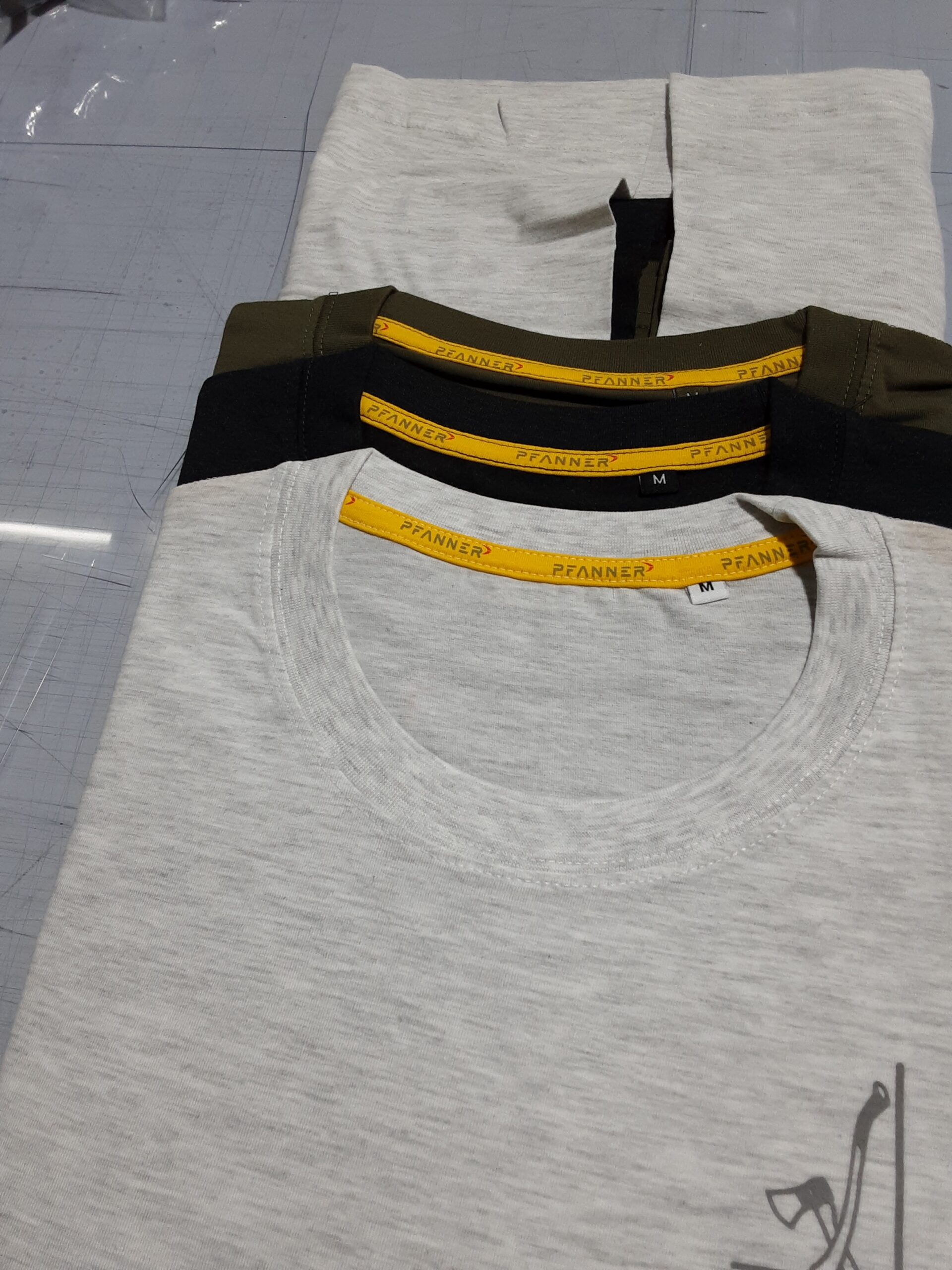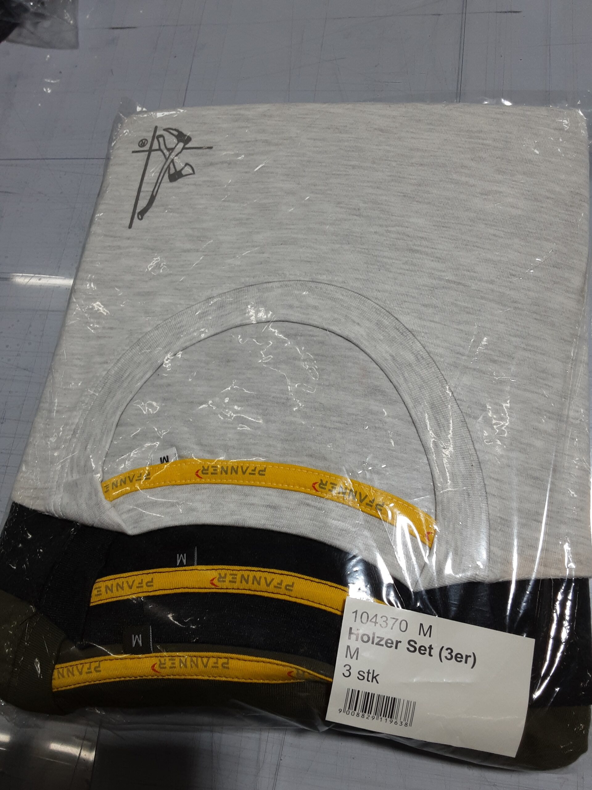 T-Shirt Set in drei Farben (Ash Grey ,Brilliantschwarz und New Army ) und Holzer Logo auf linker Brust .